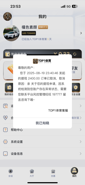 网友投稿前天充值300还能正常提现今天充值900提现2400账号异常了