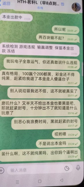 两百块钱输不起,充100玩PG出300直接黑,还装模作样的说退本金,结果想都不用想这种死狗戳中痛处了知道它全家死绝没钱买棺材直接给我封号了