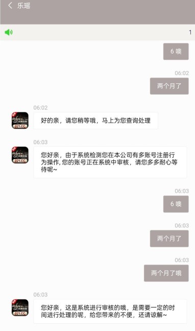 问就是审核 上次说注单异常 现在说多账号