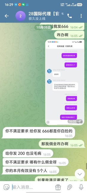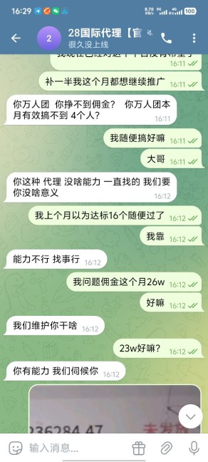 我现在只想在论坛曝光他们,666彩金我也不要了 ,避雷大哥嘛,真心的,无论代理还是玩家都不要去28国际玩,只要去了她家做代理基本就是黑奴,别想给你算佣金算人头费,然后客服也是不要逼脸,我已经放弃希望了。没有选择好平台,在一个垃圾平台把自己做夸了。