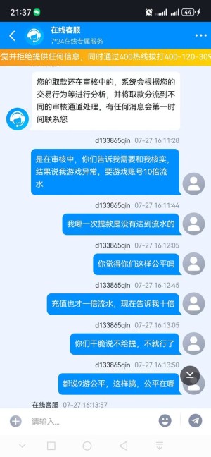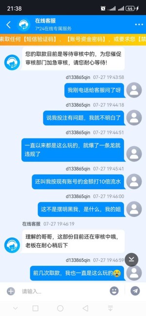 不给取款,在他们网站打了一条鱼,说我违规操作,现在让我打10倍流水才能提款,第二个方案时给我退最后一次充值的金额8000人民币,真恶心