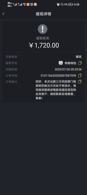 黑款1720充值1000玩BG真人贏了720都黑,操她妈玩不起,本次这种黑网站曝光,希望大家不要上当,看到这种台子远离