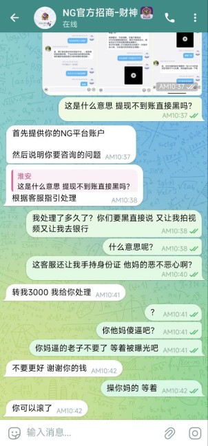 我提现900只给我到了0.01找客服一直让我去ATM拍视频 拍给他后又故意一直刁难我 最后直接手持身份证,找到他们主管告诉我给他3000帮我解决,最后直接开骂我,南宫是不是活不起了?大黑台一个