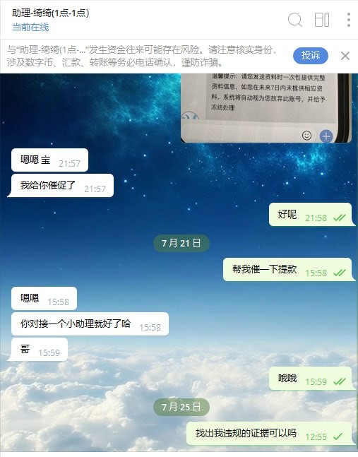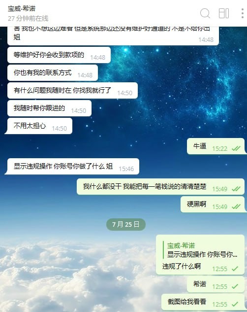 随风散 黑款我21w 账号susu00 要黑钱直接硬黑,连同本金也黑。问违规什么也不给出证据,直接给我账号封了,还好我所有的都图了。百家乐一直给我限额2000起步,现在也没人出来洗地了已经懒到这程度了。上级土豆号 ranran321 anni88yunge66666 绑定手机号 +63 966895 2629 如果我这点负盈利就能把你们打红害你们发不起工资就是你们的问题。如果不处理我会一直维权到底。