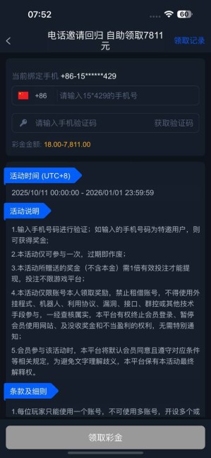 注册账号绑定银行卡在优惠活动中自助申请彩金,查特邀,提款限制自行查看活动详情
