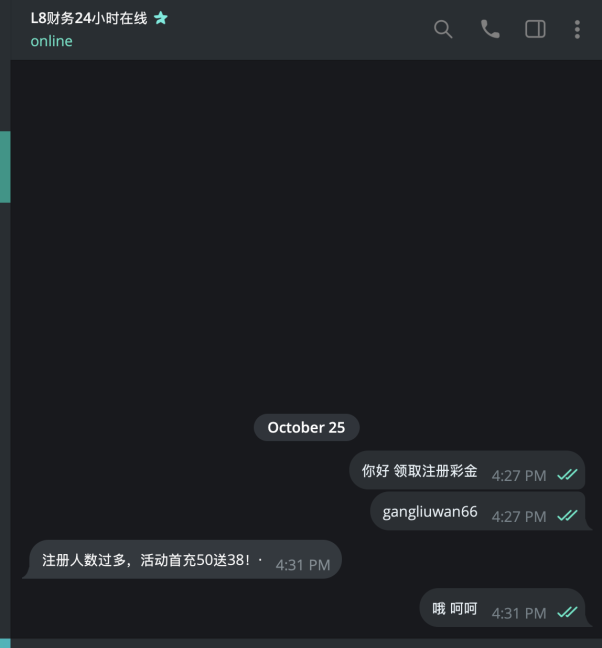 郭金醒 L8 送38u 需要绑定3个月以上的活跃地址 给客服转1TRX 彩金限制看图 项目: https://kefu001.l8123.com/register.html 客服: @L8vip8 【不建议充值 黑款自行承担】 ➖➖➖➖➖➖➖➖➖➖➖
