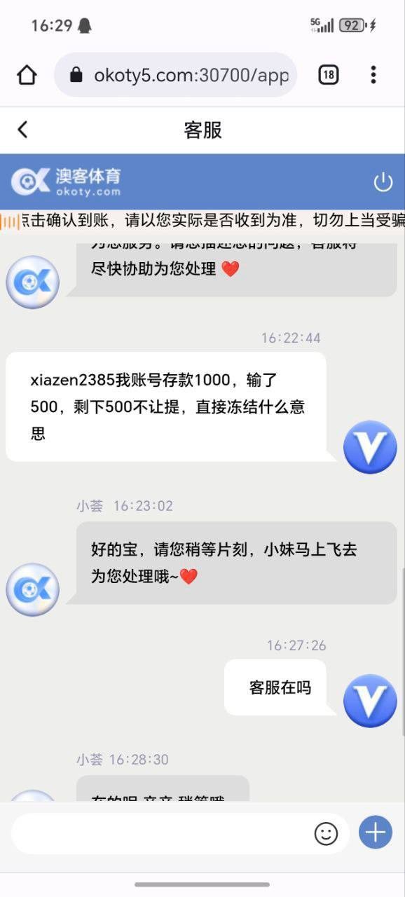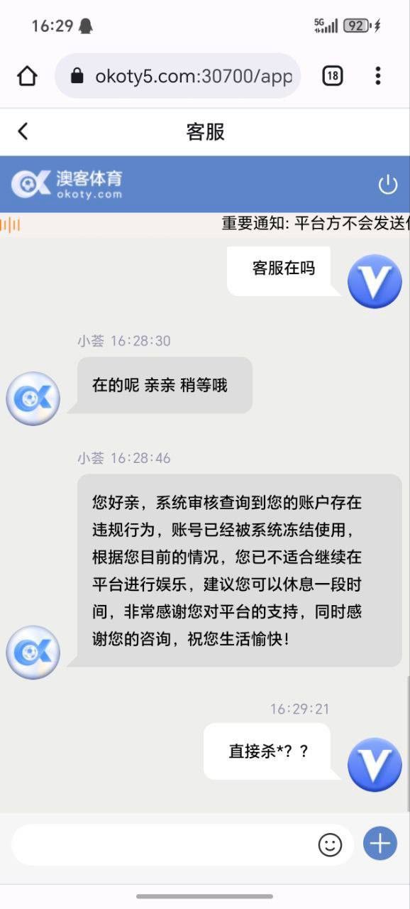 随风散 这是包网刚上线的台子在推广的忽悠下充值了1000娱乐玩玩,输了500,然后想提款剩下500,直接被告知账号冻结 这不就是直接杀猪吗,也没赢钱,都不给出款,直接本金清空,现在菠菜都这么黑的么,大家认清这个界面的台子!太黑了