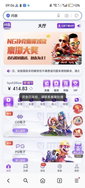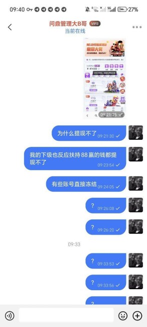 问鼎娱乐人头费也直接冻结充值也冻结,负责人在线也一直不看信息,开始说说多IP后面说刷水一下一个借口,建议大家别玩