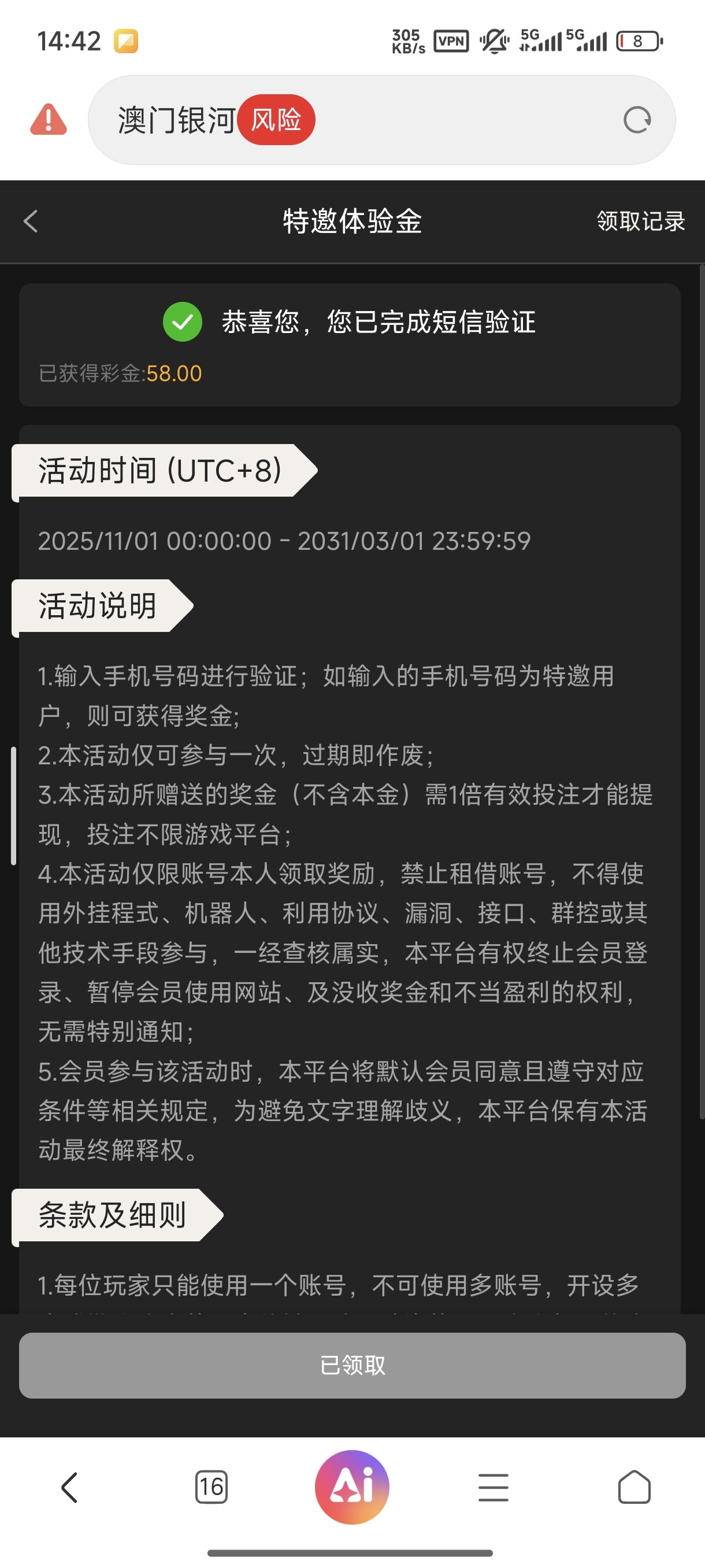 银河电话特邀自助领取58 1水不限制游戏