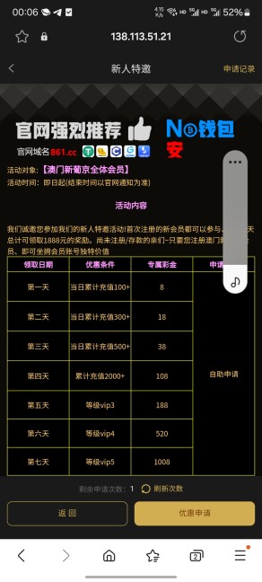 注意事项:自助验证,注册绑定资料,优惠里面自助申请;项目仅分享,出款自测