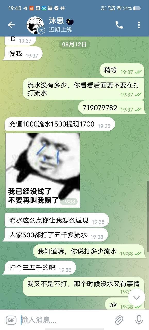曝光狗推沐思,搞不起首充1000反688就不要搞,群里有很多老哥都被骗了,平台的钱也提不出来 后面又重新充值打了流水,结果平台的钱不给提,这个畜生也给我拉黑踢群了