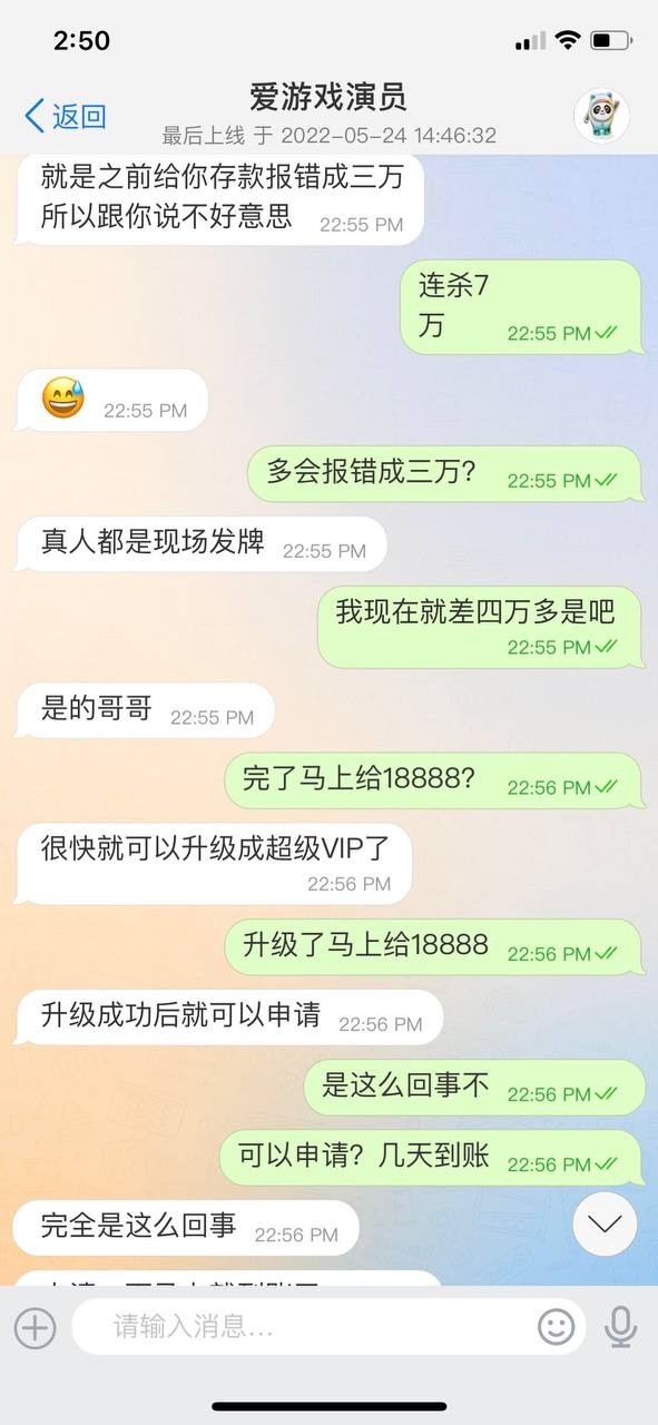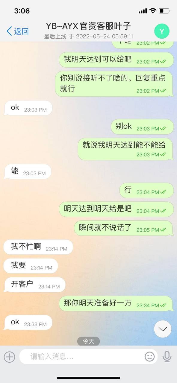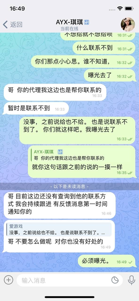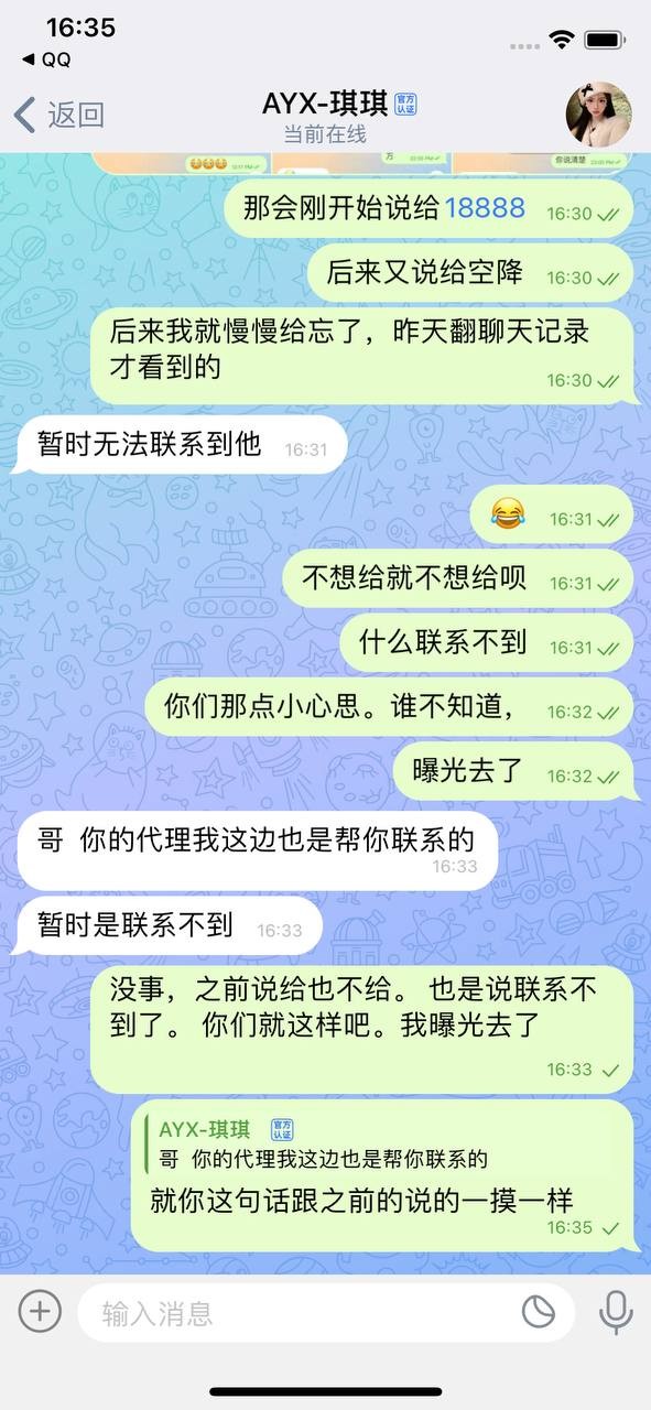 随风散 穷疯了?拖着一个会员拖了几年,2022年世界杯那次输了198万。答应说给18888。后来没给。我就没玩,也一直没联系,在2025年8月10号又开始联系我给我画饼,还是客服联系。我一直玩的公司线。客服说联系不到上级,这不是扯淡呢。几年了。我都不追究了。你们又开始骚扰了。 真是没事找事,自己的承诺都兑现不了。还隔三差五的骚扰,口口声声说是正规盘,却一直做着野鸡台的事,真你麻痹不要点逼脸。