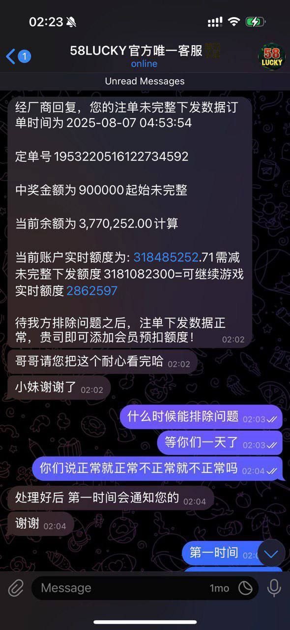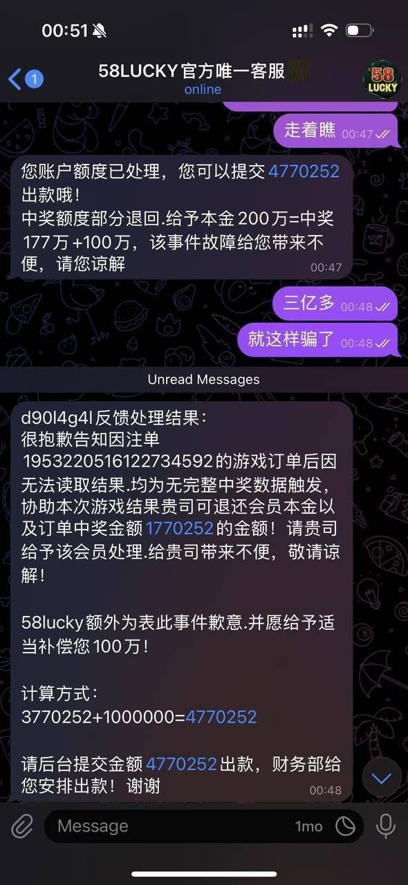 在58lucky累计充值了一亿多缅币昨天中奖了 三亿多一点缅币 就说什么系统故障 只算给200多万缅币 不给提现各种扯皮 大家可以看图片就这样没给提现的平台 希望大家及时止损 望网友们互相告知