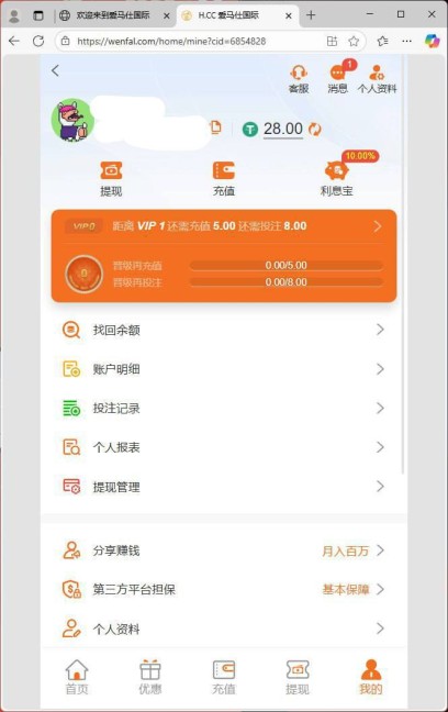 汇旺账号当月有500流水记录的兄弟可以联系客服申请28u彩金,没有就无视,提款限制自行询问客服