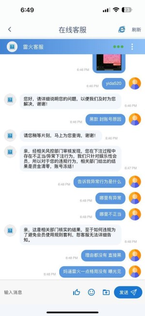 随风散 赢钱就封号,提款秒冻结,吃相难看到家! 想赢钱成功提款的朋友,绕开雷火平台!这个平台只欢迎你输钱,一旦赢钱立马各种"操作"搞你心态 本人账号 yida520,正常投注体育项目,1.8万提款申请被拖延,最终仅提现成功7千,剩余余额被冻结,账号直接封禁。期间配合所谓"审查"一整周提供了视频认证、银行卡、手持证件等所有资料。他们一边说"审核通过可以提款",下一秒直接封号! 投注方式完全合规:大比赛、赛前单、无对压行为也从未参与过平台那些"存一万送两百"的高门槛活动。但在雷火,赢钱就是"违规",输钱才算"正当"。 联系客服要说法?不是不回复就是一句"涉嫌套利"但问具体哪里套利,他们一句话都说不出,直接踢人、挂断、推上级,然后上级告诉你: 我没权限处理。 雷火这吃相,真是恶心到家输了你是财神,赢了你成罪人,奉劝各位: 别再给狗庄送钱!