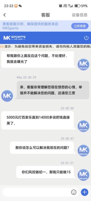 空清 无缘无故黑我15000元,限制我登录,就因为百家乐赢了10000。连我本金5000都不给。然后一系列理由,真的没办法,各位同仁棒棒忙,给我转发一下,现在的亚博旗下是各种黑钱,话术理由五花八门。风控的标准就是只能输不能赢。用最适合亚博的三个字概括是,杀猪盘