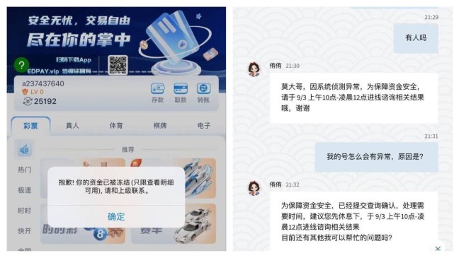 空清 我抱着试试的心态 充值了1000元 1000元我觉得很少 就玩玩电子游戏算了 谁知道赢了23000块 在提款的时候 直接冻结了我的账户 不给我出款 我问客服 他说是我注单有问题 让我4天后咨询客服 我就等到9月3号又咨询了客服 9月3号又咨询客服 说等10号 这个平台妈的一点格局都没有 1000元人名币都黑 妈的 还不够我嫖娼呢 大家避雷
