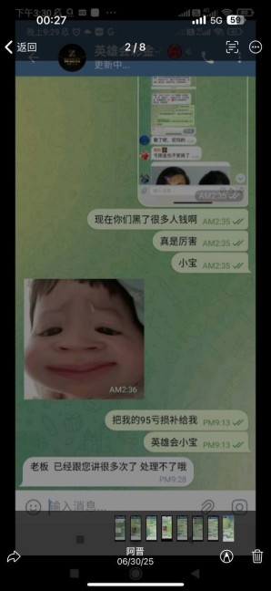 社区志愿者 #英雄会 之前在 #汇旺 上压跑路群内一个星期亏损福利 比较恶心地方1:比如今天8.31号输了,次日说管理不在等处理,让你继续玩,他们内部知道七天后停业。然后一下全部黑了 2:去新币上压后,把汇旺黑掉的全部拉进新通知群故意恶心你 3:跑路还要给你骂一顿先 目前在 #新币 #玖鼎上压,避雷 #英雄会 有跑路前科