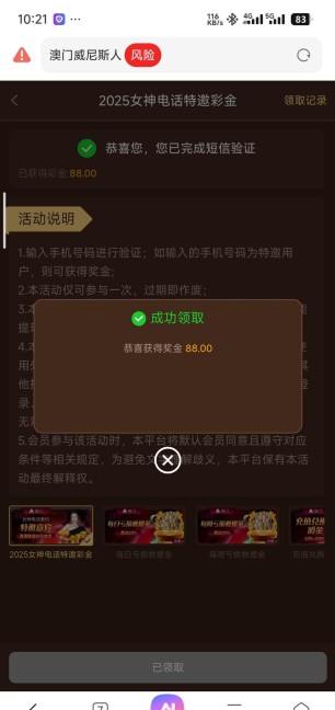 之前老哥们发的时候去碰,结果不是特邀,今天看群里老哥碰到了又去了一次,领了88网站56V.com