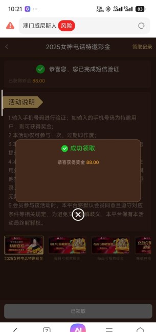 之前老哥们发的时候去碰,结果不是特邀,今天看群里老哥碰到了又去了一次,领了88网站56V.com